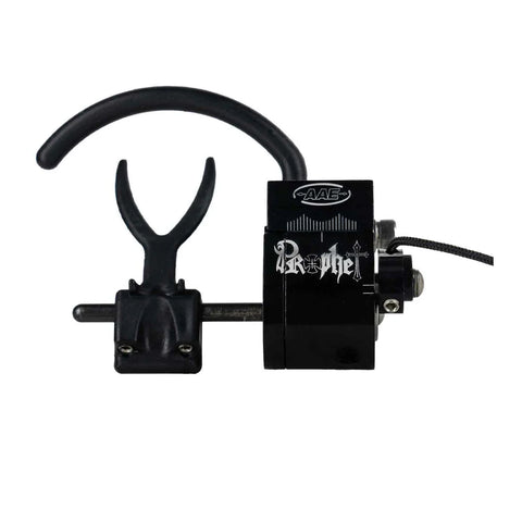 The AAE Prophet Drop Away Rest is a full-capture, fall-away rest designed for hunters and target shooters seeking accuracy, durability, and ease of timing. It features non-micro adjustable horizontal and vertical adjustments. Specifications include AMO 5/16x24 mounting style, full containment, and availability in both right-hand and left-hand orientations.