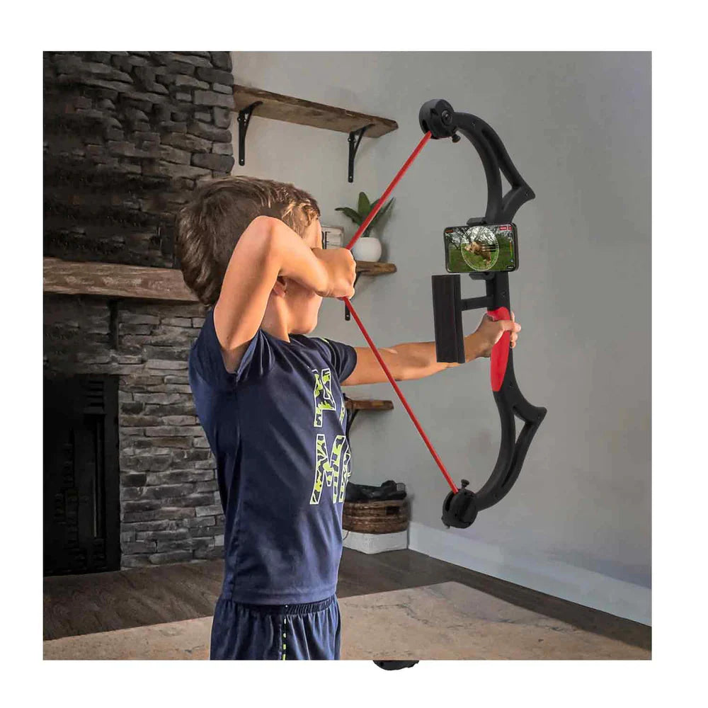 The AccuBow Nano is the world's first virtual archery practice system designed specifically for kids. It features adjustable pulling resistance from 5 to 45 pounds, dual resistance dials, a compact and lightweight design (2.4 lbs), an installed phone mount, an easy-grip handle, and is ambidextrous. Perfect for kids, teens, and beginner shooters.