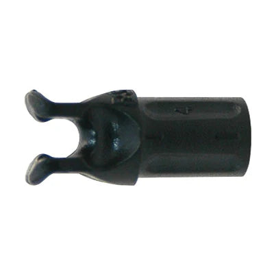 The QAD Tune-A-Nock FS Black is a 12-pack of nocks designed to fit Super Uni-bushings and carbon shafts. These nocks feature a lighter weight, low friction string groove that increases arrow speed by up to 4 FPS. The short ear design ensures a cleaner release and they work effectively with string loops. The color is black.